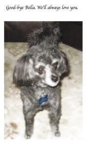 NOTE: Update: January 26, 2016, at the age of 10+ years, Bella did not wake up. She left her loving family behind. The children ages 9, 7, and 5 had her watchful eye from the time they were born. She has left her footprints on all of our hearts. “People who love God take good care of their animals” (Prov. 12:10).